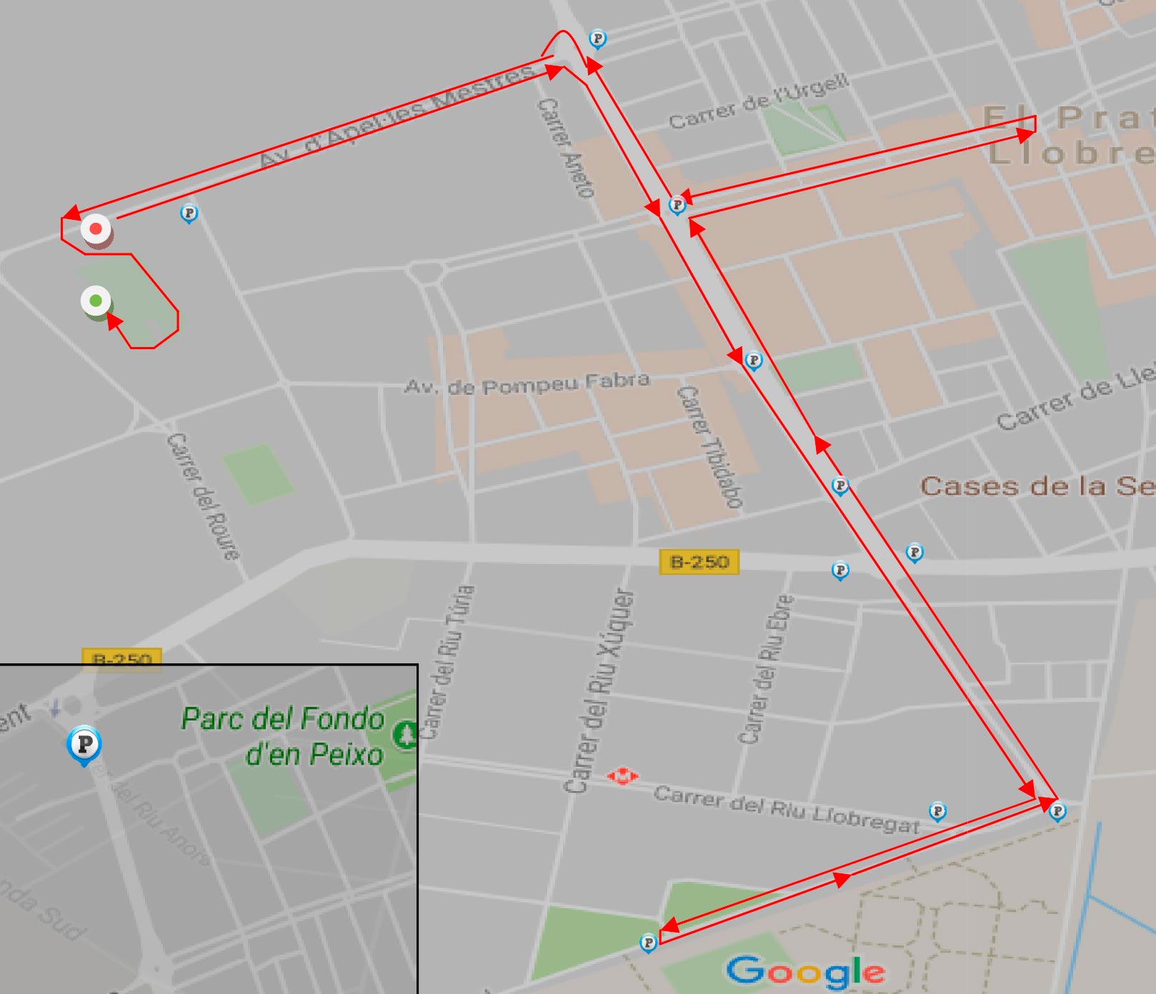 El recorregut serà: CEM Sagnier, Apel·les Mestres, Remolar, ronda del Sud, Remolar, Verge de Montserrat, Remolar, Apel·les Mestres i CEM Sagnier (consulteu l'imatge adjunta).