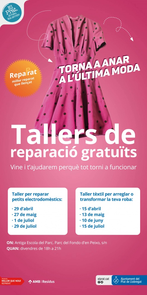 Es fan dos tipus de tallers: de petits electrodomèstics i de tèxtil / roba. Cal portar-hi un aparell o una peça de roba, i no cal inscripció.