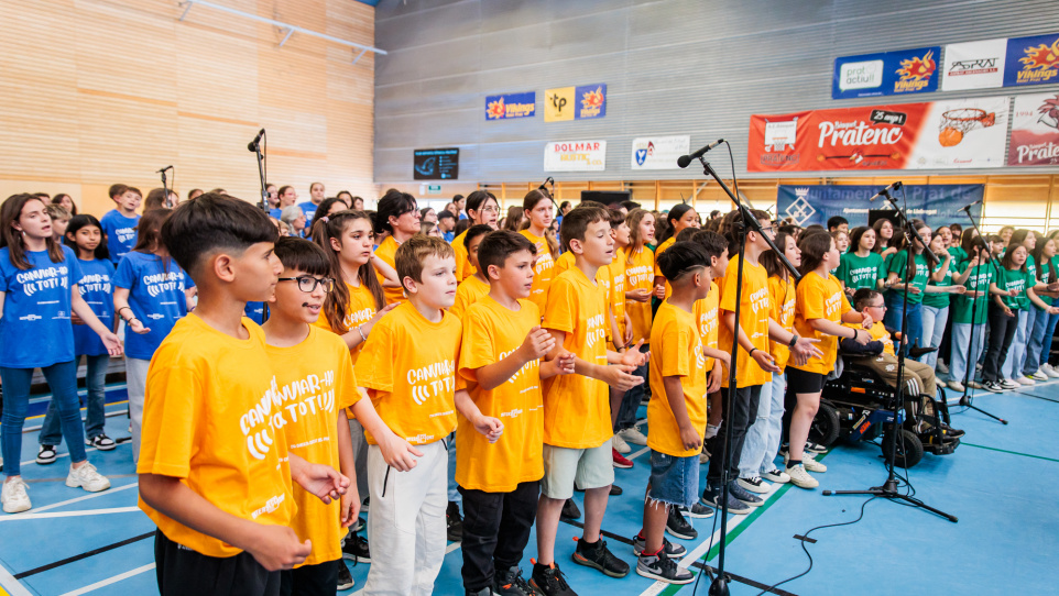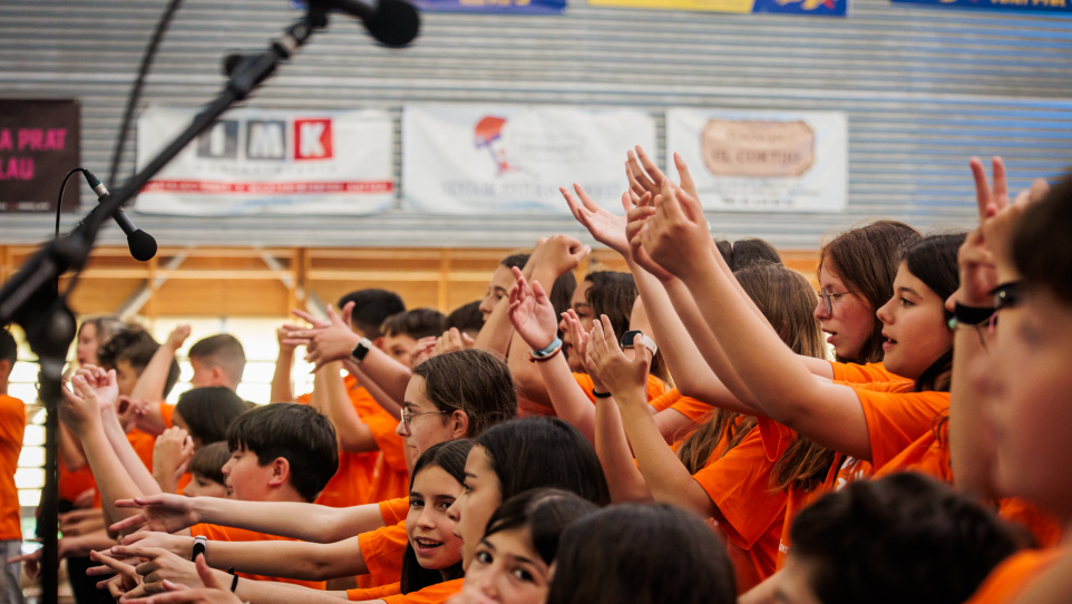 Tot seguit, a les 10 h, va arribar l’alumnat de les escoles Charles Darwin, Joan Maragall, Can Rigol, Jaume Balmes, Mare de Déu del Carme, Pepa Colomer, Jacint Verdaguer, Escola del Mar i La Seda per poder fer un assaig general abans que entressin les famílies, que van omplir el poliesportiu de gom a gom.