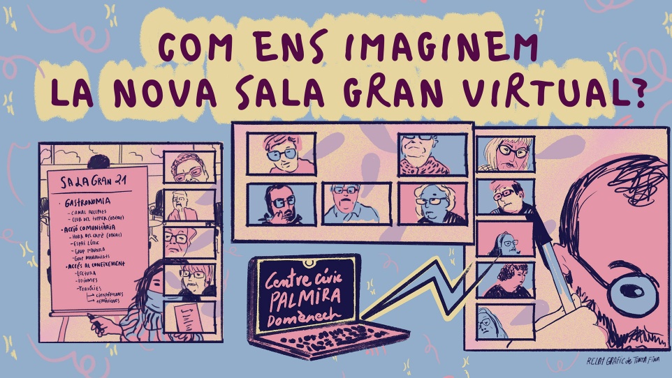 Durant el gener i febrer, la gent gran i l'equip de la Palmira han estat treballant en un procés participatiu per decidir conjuntament com continuar i com aquest projecte podia aportar encara més coses a les persones que hi formen part. Han parlat de quines coses volien canviar i com, de què era el més important, de quines necessitats tenien, i han treballat en propostes i trobades que dinamitzaran elles mateixes per fer més seva aquesta sala. Gràcies a la creadora Tinta Fina, podem veure un relat gràfic de com ha anat aquest procés i com funcionen aquestes trobades virtuals per a elles.