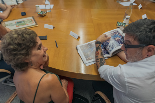 Pilar Cabrera i Lluís Mijoler en un moment l'acte de donació.