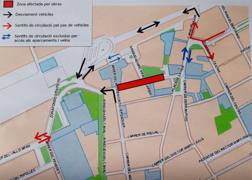 El dilluns dia 30 d'abril i fins dimarts dia 1 de maig es tallarà al trànsit el carrer del Doctor Soler i Torrens, entre la pl. de la Vila i el c. de Mossèn Cinto Verdaguer, amb motiu de les obres de reparació de les tapes del clavegueram.