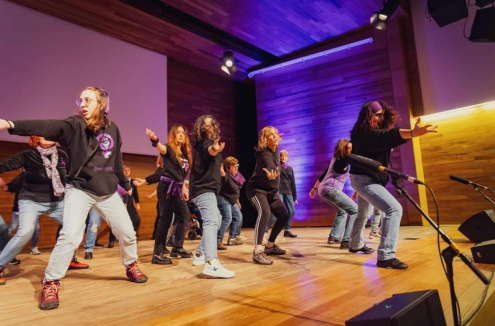 Actuació col·lectiva de dansa reivindicativa dins de l'acte central del 8M