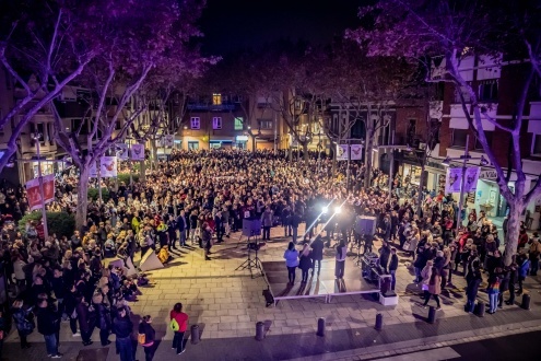Concentració de rebuig a la pl. de la Vila contra l'assassinat de la veïna del Prat a mans del seu marit.