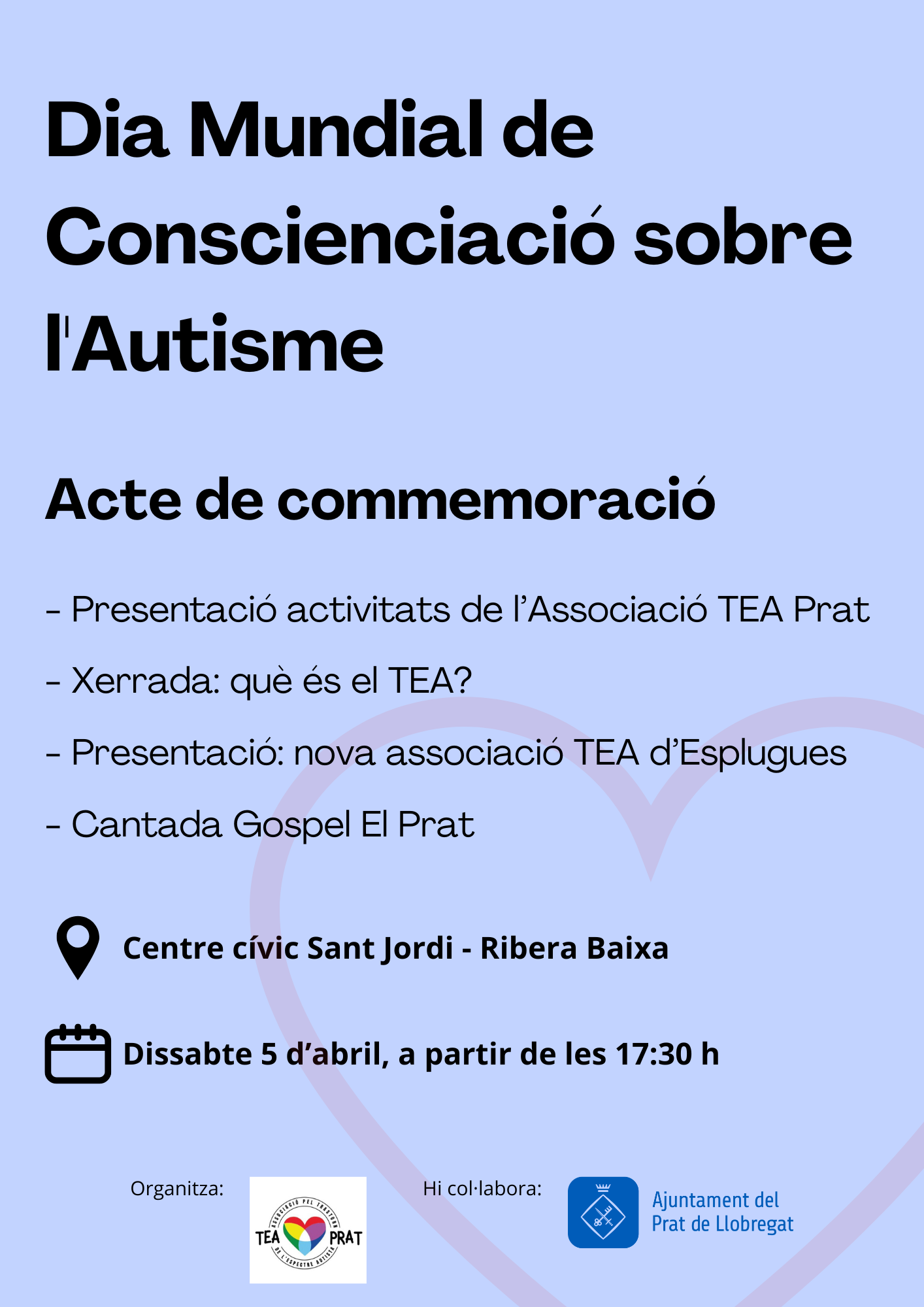 L’acte finalitzarà amb una actuació especial de Gospel El Prat, que posarà la nota musical a una tarda pensada per promoure la inclusió i la comprensió del TEA a la ciutat.
