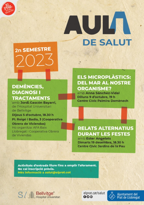 Totes les propostes són d’entrada lliure i gratuïta fins a omplir l'aforament. Més informació al web de l’Aula de Salut.