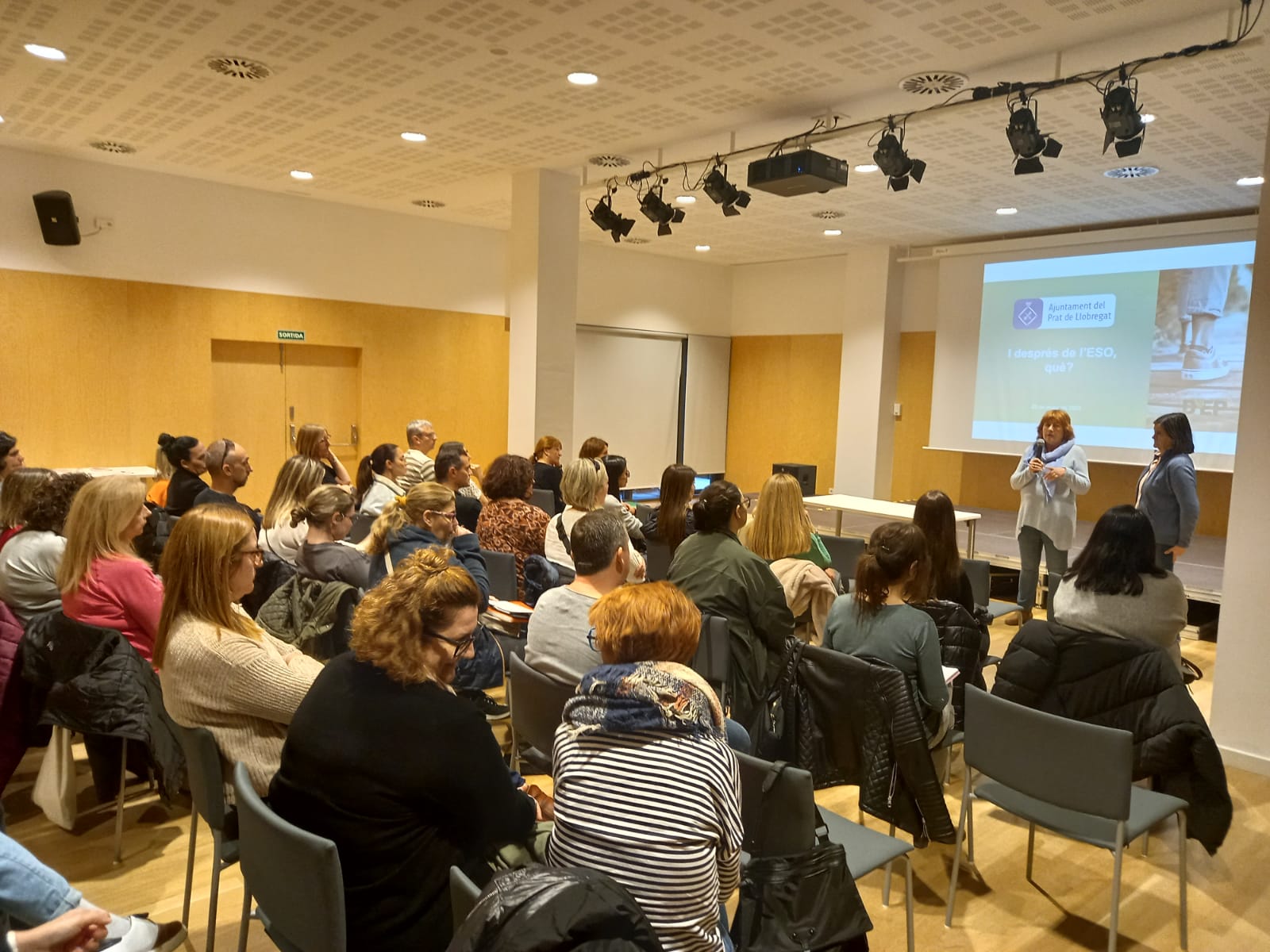 El Centre Cívic Palmira Domènech va acollir ahir a la tarda la sessió “I després de l’ESO, què?”, adreçada a les famílies de fills i filles en edat de 4t d'ESO. L’acte, que s’emmarca en la Xarxa d'Orientació del Prat i el Programa de Noves Oportunitats Educatives, va donar a conèixer tots els itineraris possibles un cop acabats els estudis d'ESO així com informació relacionada amb el procés de preinscripció i l'elecció d'estudis.