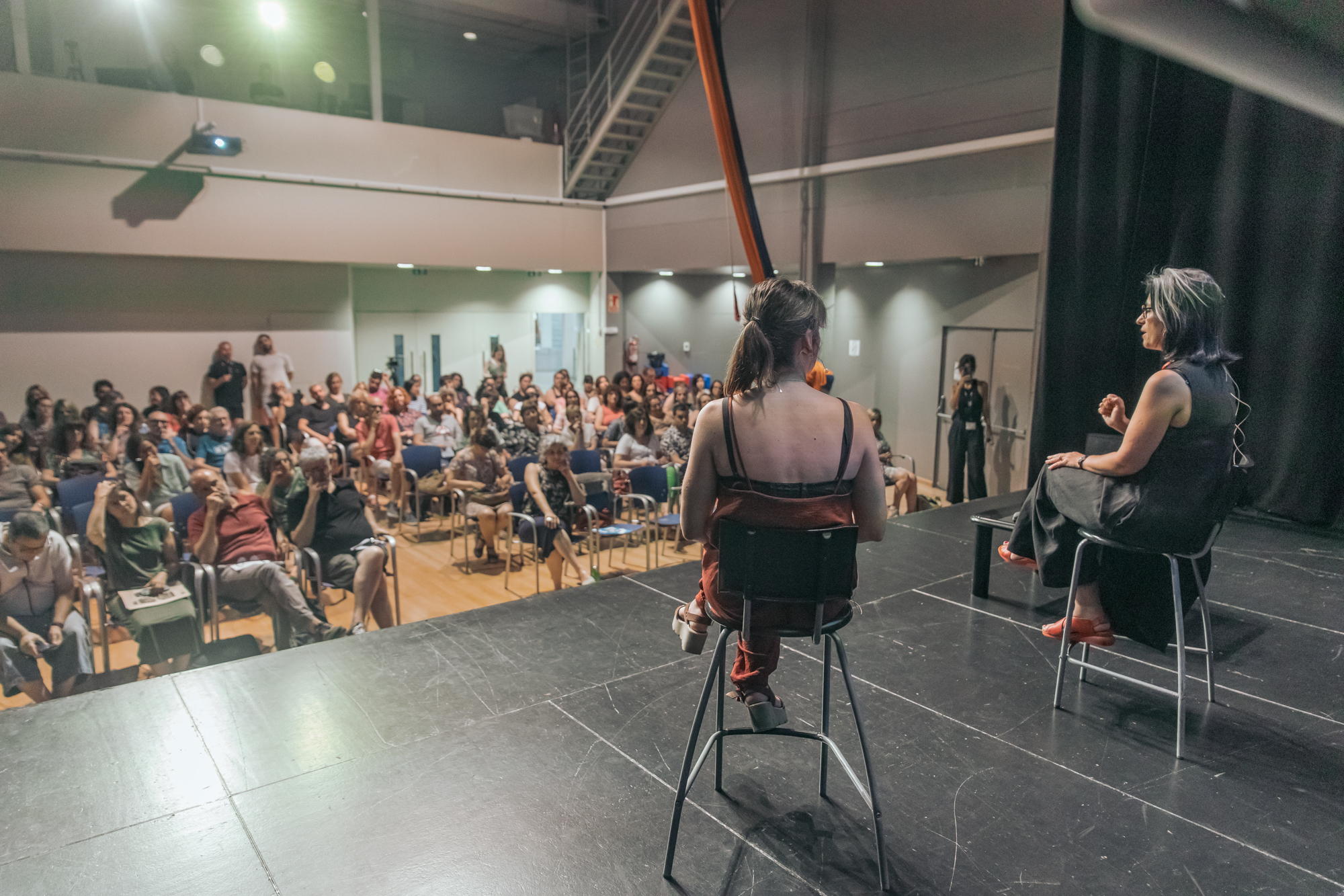 Així, a les 9 h del matí els i les més puntuals van acostar-se al centre cívic on tindria lloc la jornada, per començar a reforçar la dimensió comunitària i reflexionar sobre la vocació transformadora del programa. Amb la sala escènica plena de gom a gom, i després d'una breu presentació de la Marta Domènech com a moderadora de l'acte, va pujar a l'escenari l'Anna Martín Cuello, que es dirigia a la comunitat d'Interseccions per primera vegada com a tinenta d'alcalde de l'Àrea d'Educació, Cultura i Comunitat.