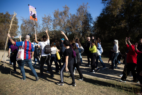 El públic, però, no estava sol. Entre proposta i proposta, l’equip d’amfitriones – la Conxita Herrero, el Guillem Gefaell i el Cris Marco - ha estat l’encarregat de guiar i acompanyar la gran ruta indisciplinada, fent dels trànsits entre propostes espais de trobada i xerraeta a ritme de brilli-brilli.