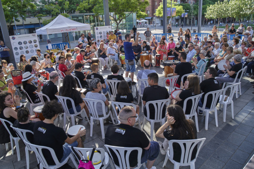 Després de l’agraïment de l'alcalde, es va gaudir d’un animat i sorollós cercle de percussió del qual van participar més de 100 voluntàries i voluntaris de la nostra ciutat. El cercle de percussió va estar dinamitzat per Le Cercle de Percussión que desenvolupen la seva activitat en diferents àmbits de la salut i el lleure amb vincles al nostre municipi.