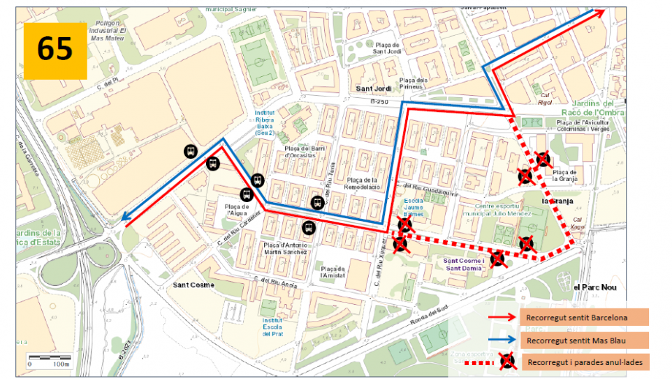 En el cas del transport públic, es veuran afectades 4 línies d'autobús entre les 8 h i les 18:00 h: L78, L10, PR3 i 65. En el cas de la línia L78, s'anul·len les dues últimes parades de l'avinguda Remolar i l'autobús es desviarà per l'avinguda Onze de Setembre i carrer Roure. L'itinerari de la L10 també s'altera i s'anul·len algunes parades del carrer Riu Llobregat, avinguda Remolar i carretera de l'Aviació, amb el pas alternatiu pel carrer Riu Xúquer. El PR3 tindrà un recorregut alternatiu per Onze de Setembre, per on accedirà a les parades a demanda del Cementiri Sud. Per últim, el 65 també veurà alterades les seves parades del carrer Riu Llobregat i l'avinguda Remolar, que seran desviades pel carrer Riu Xúquer i Onze de Setembre.