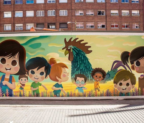 Un bon exemple de la creativitat pratenca van ser les il·lustracions que van decorar durant mesos la tanca d’obres de Verge de Montserrat.