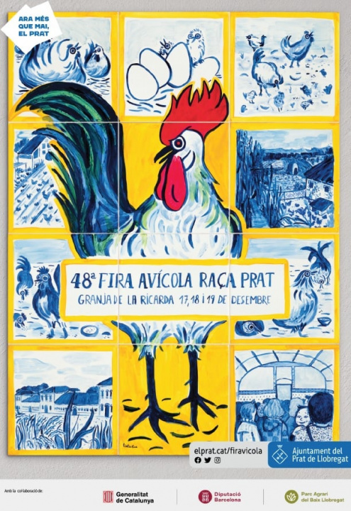 La imatge de la 48edició de la Fira Avícola del Prat, per la qual “Tinta Fina” ha estat nominada finalista d’aquests premis, està inspirada en la tradició rajolaire, pròpia de Catalunya i d’altres cultures mediterrànies. L’artista pratenca va dibuixar i pintar a mà sobre rajoles i plats de ceràmica il·lustracions relacionades amb el Prat i les seves diferents manifestacions culturals, agrícoles i gastronòmiques, com les vinculades al Pota Blava i la carxofa.