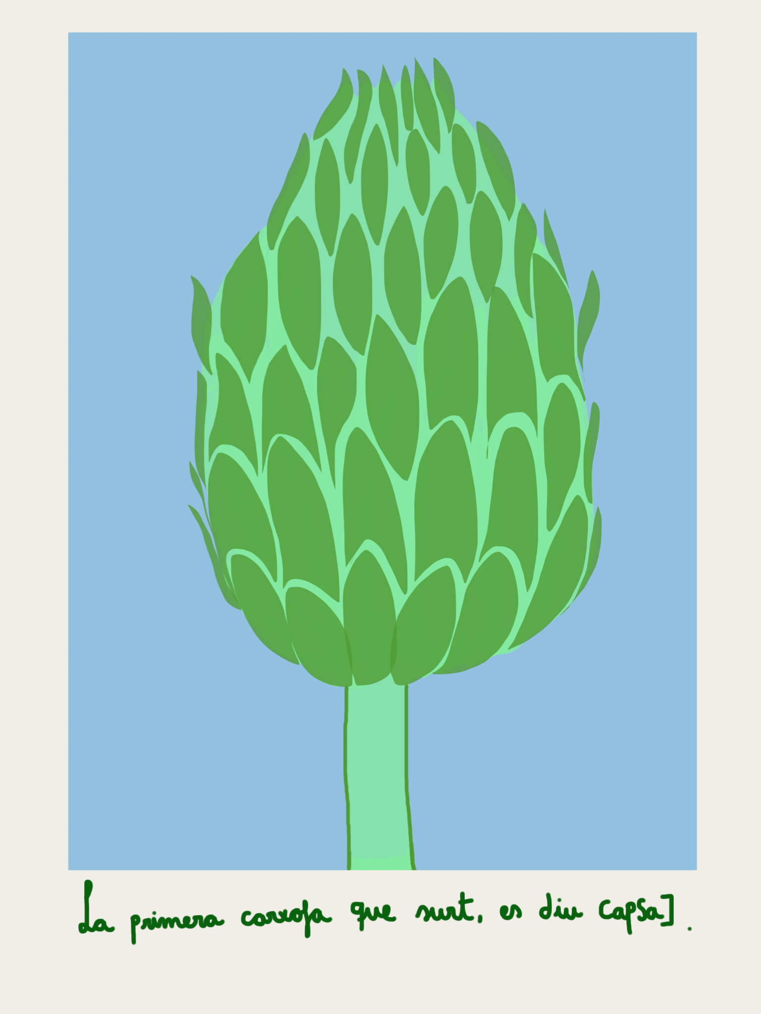 Com a cada edició un o dos components del grup d’amfitrions s’encarrega de plasmar la vivència del/la músic per terres pratenques. Aquest cop, la Sarai ha fet unes postals, que es titulen la Carxofa i el Camafeu, les dues cares d’una realitat gastrocosmogònica: al cor de la carxofa s’hi troba allò més tendre.
