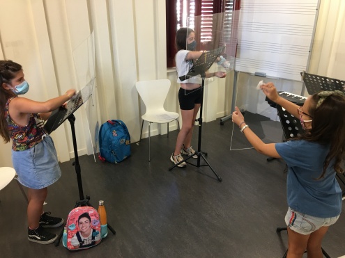 Les activitats a les diferents seus es realitzen amb totes les mesures de seguretat necessàries: ús de mascaretes, neteja de mans i de materials, ventilació d'espais, instruments no compartits, etc. Les seus en les quals s'ha reprès part de l'activitat presencial són Torre Balcells, La Capsa, L'Artesà i el Centre Cívic Palmira Domènech.