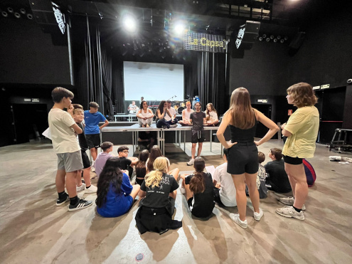 Per una banda, van poder conèixer la tasca que es realitza al centre cultural a través dels diferents projectes que s'hi desenvolupen així com la seva programació. L'alumnat va recórrer tot el centre: des de les oficines des d’on treballa l’equip tècnic, passant per les aules de L’Escola d’Arts en Viu, l’estudi de so, els bucs d’assaig, per a acabar a la sala de concerts!