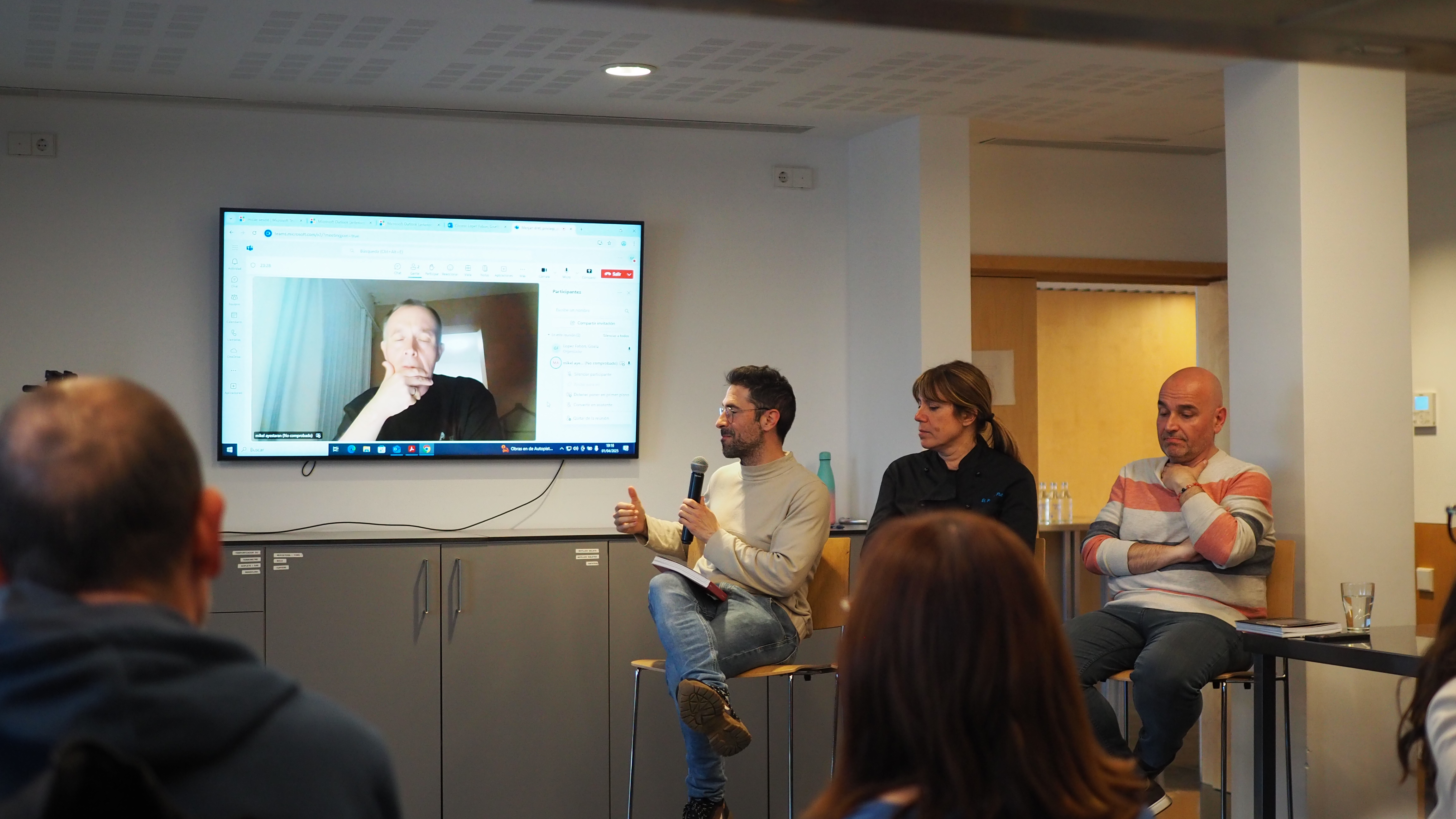 L'acte va començar cap a les 19 h de la tarda amb una videoconferència des d'Istanbul amb el periodista Mikel Ayestaran, recentment guardonat amb el premi Ortega i Gasset de periodisme pel seu reportatge "Menú de Gaza". Des de fa més d'un any, el periodista publica al seu perfil d'Instagram imatges dels plats que menja cada dia la família Hammad, a la Franja de Gaza.