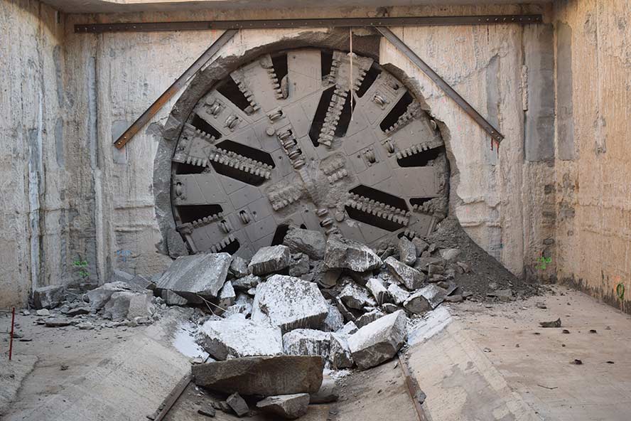 Moment en què la tuneladora perfora el darrer tram del túnel entre les dues terminals. (FOTO: Adif)