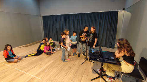 Fa uns dies l'alumnat del grup de Teatre bàsic infants 3 va gravar les falques de benvinguda dels espectacles infantils del teatre L'Artesà: The Postman, La Motxilla de l'Ada i Blink Magic. Després, van viatjar pel teatre descobrint els racons secrets i amagats, i fins i tot van veure com assajaven a la Sala Gran una companyia professional. Les experiències que pot gaudir l'alumnat de teatre amb tot el que passa habitualment a L'Artesà, vinculat a la seva programació, és sempre quelcom molt enriquidor per a elles.