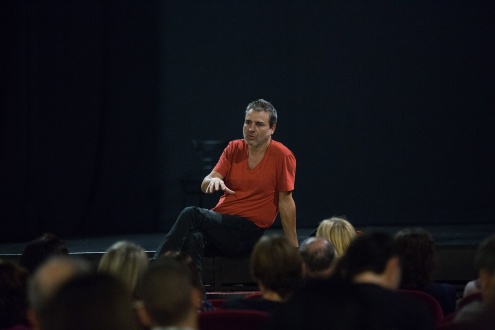 Alberto San Juan durant el col·loqui post-funció
