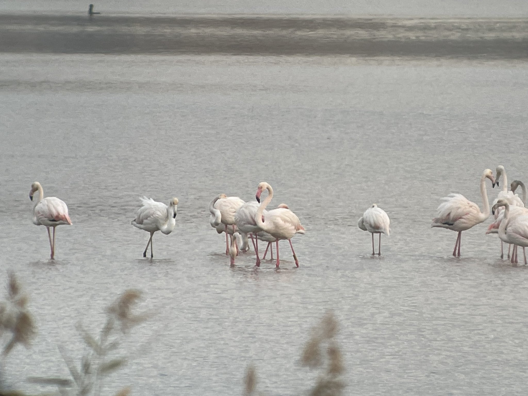Flamencs al cor de l’àrea metropolitana de Barcelona. Es tracta d’una imatge sorprenent per bona part de la ciutadania, per desconeguda, però ben habitual. La podem veure per exemple aquests dies al tram final del riu Llobregat, als Espais Naturals del Delta del Llobregat, on hi fa parada una vintena d’exemplars d’aquesta vistosa espècie. Els tècnics del Consorci que gestiona aquest espai protegit han comptat aquest dijous 23 animals, i també una vintena aquest divendres. Els Espais Naturals del Delta del Llobregat, una destinació de proximitat cada cop més apreciada per la ciutadania de tota l'àrea metropolitana, es poden visitar en els horaris consultables al web del consorci.