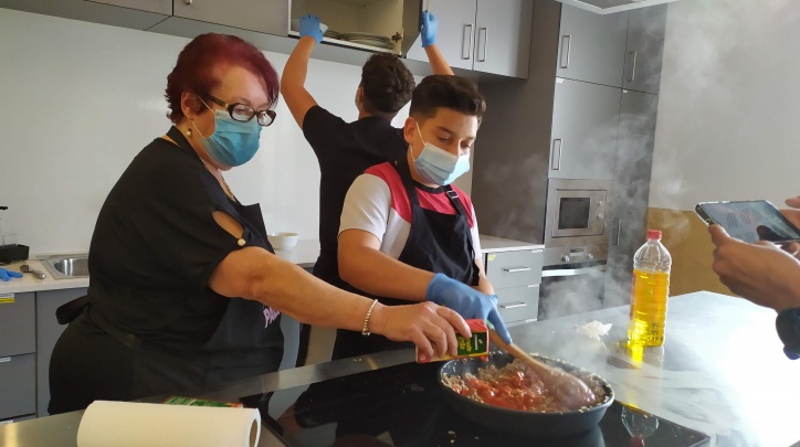 Així és com vam arribar a la tercera i la quarta sessió de la setmana de #A2fogons, en què es van cuinar les receptes acordades entre els joves de la UEC i la gent gran. Mentre el primer grup va cuinar la recepta escollida amb la Tita, el segon grup gravava, i el mateix van fer l'endemà: mentre el segon grup cuinava amb la Conchita, el primer grup era l'encarregat de gravar la recepta i els passos.