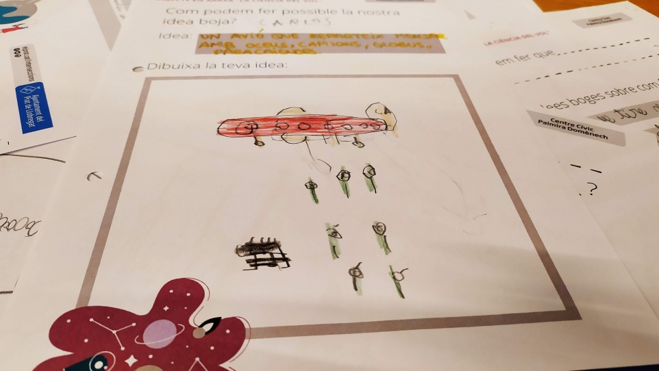 Els artefactes que han ideat amb el Santi Gil, enginyer que els ha acompanyat durant la segona sessió, han sigut: