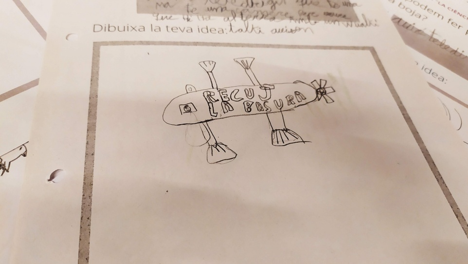 El grup de segon ha volgut treballar en la proposta de millora que parcs i carrers estiguin nets mitjançant el reciclatge i el respecte per la natura, i per aconseguir-ho han ideat un super artefacte amb la Judit Díaz: un avió teledirigit amb una mà mecànica i molt més. Porta una càmera per localitzar les escombraries i un walkie talkie per avisar a la gent que llença brossa al carrer. Aquest avió del futur té també una placa fotovoltaica i funciona amb energia solar i amb unes hèlices amb què s'impulsa i són d'alumini per poder ser lleuger.