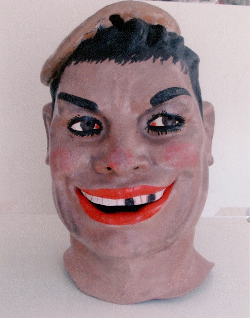 El capgròs representa una figura masculina amb, representació d’una migració arribada al Prat per a treballar a la fàbrica de la Papelera Española.