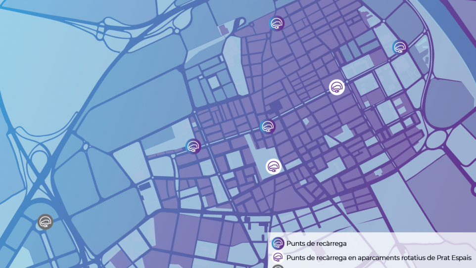- 6 places a la plaça d'Espanya (Potència de recàrrega: 22 kW i 50 kW)
