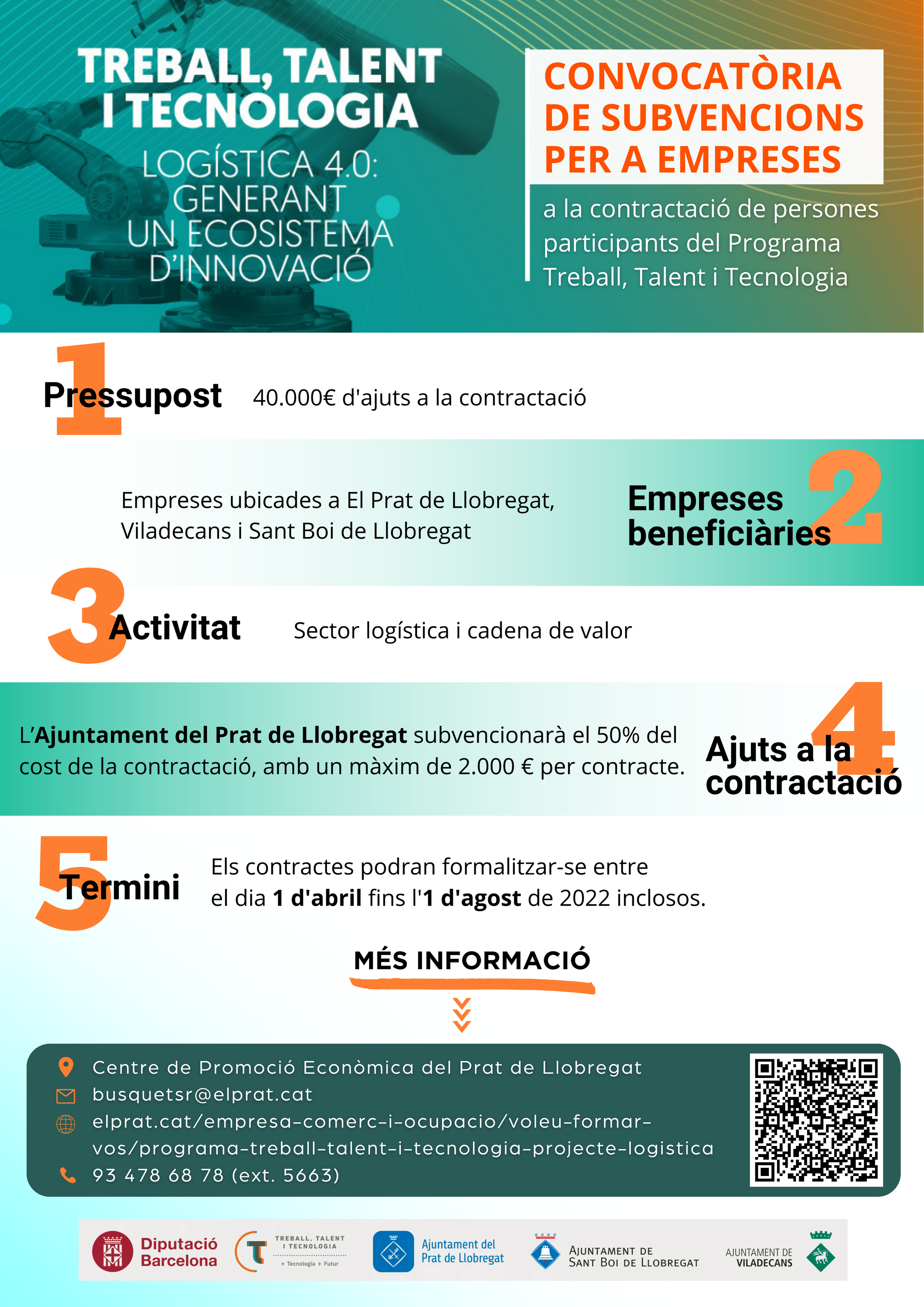 - En el contracte de treball s’hi ha de fer constar la frase “Contracte subvencionat per l’Ajuntament del Prat de Llobregat, en el marc del Programa Treball, Talent i Tecnologia de la Diputació de Barcelona”.