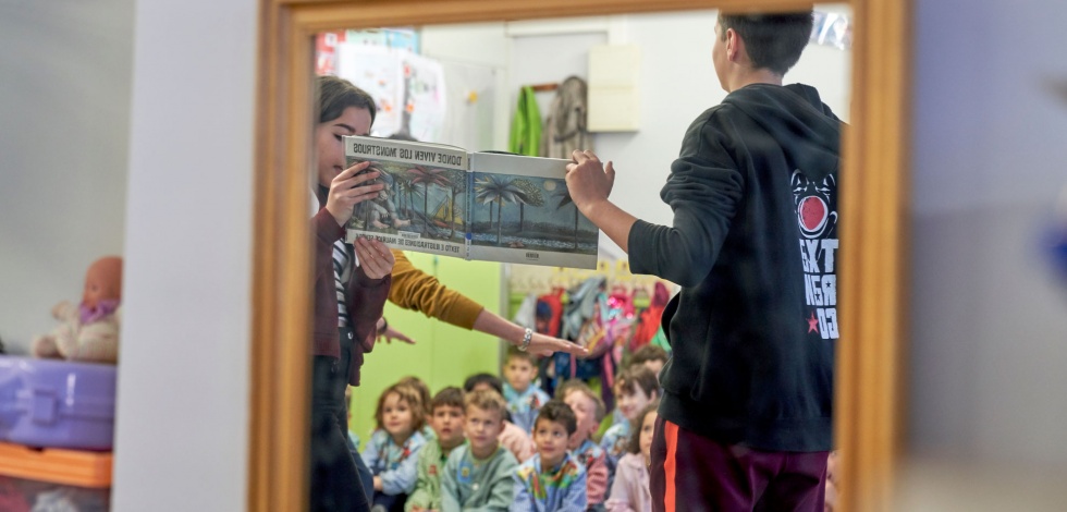 Persones voluntàries acompanyen infants de primària mitjançant sessions conjuntes de lectura oral per tal de millorar...