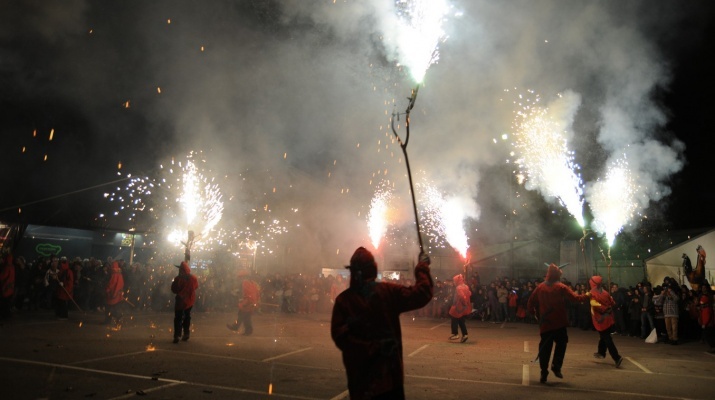 Actuació pirotècnica de la Colla de Diables del Prat en l'acte inaugural de la 49a Fira Avícola Raça Prat
