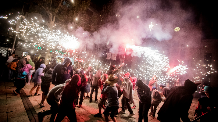 Eviteu les aglomeracions, participeu al correfoc en els carrers amples. Col·laboreu amb l’organització i no demaneu aigua al veïnat: evitareu taps i relliscades, i també que la pólvora es mulli i exploti en comptes de cremar-se.