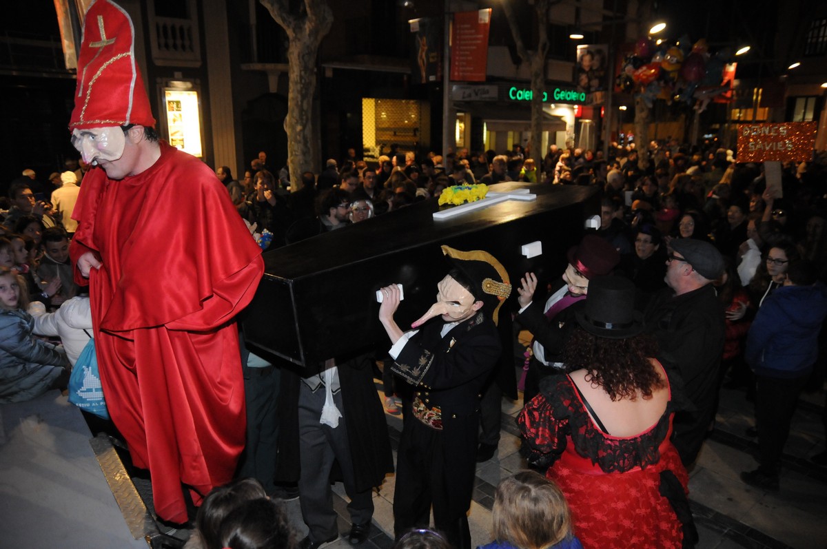 Sigueu tots benvinguts a compartir el vostre dol per la pèrdua del rei de la disbauxa amb les ploraneres i els ploraners a la pl. de la Peresa. Tothom qui ho vulgui podrà apropar-se al taüt on descansa Sa Majestat Carnestoltes per llagrimejar, sanglotar o plorar com magdalenes. Cadascú aporta el seu estil!