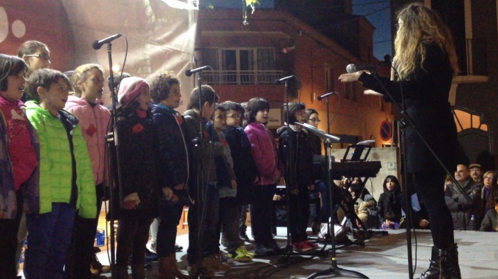 Els cors de l'Escola Municipal de Música del Prat realitzen la ja tradiconal cantada de nadales per innaugurar el pessebre a la Plaça de la Vila.