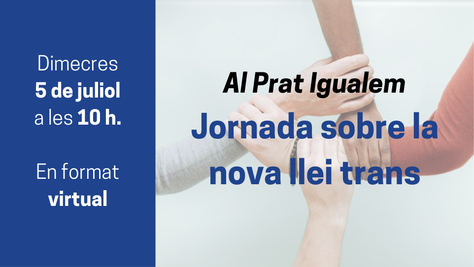 En el marc del programa Al Prat Igualem, organitzem la jornada informativa sobre la nova llei trans, que celebrarem en format virtual el pròxim dimecres 5 de juliol de 10:00 a 11:00 hores.