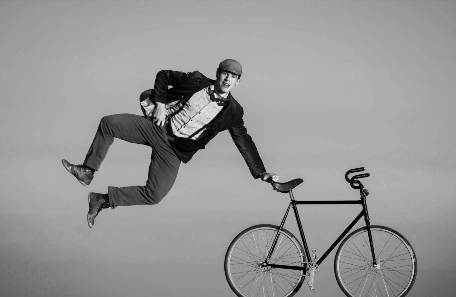 Un espectacle on les rodes d'una bicicleta s’eleven del terra, cap al cel. Amb elles totes les mirades, petites i grans, de tots els colors, que compartiran la il·lusió d’un món al revés, la rialla i la tensió, la màgia del circ. Una bicicleta artística, ballarina, portora de piruetes i acrobàcies, i un artista, portor de somriures arreu del món.