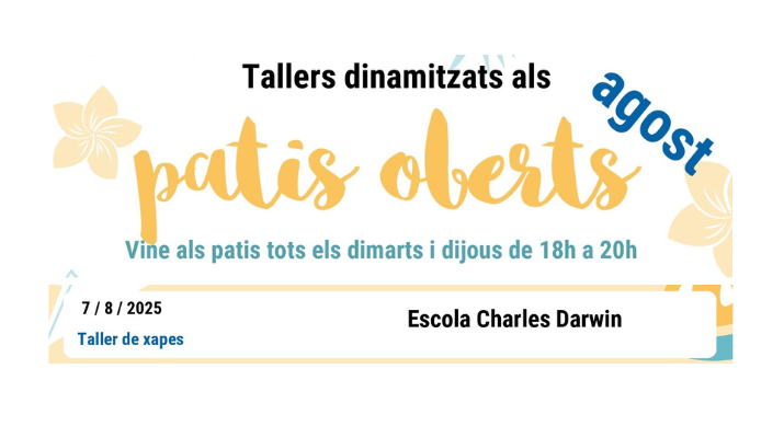 Esteu aquíInici » Agenda d'activitats » TALLER DINAMITZAT PATI OBERT: Taller de xapes TALLER DINAMITZAT PATI OBERT: Taller de xapes Temes: Educació, EstiuTIPUS: JocsCicles: Tallers dinamitzats Pati ObertPer a qui: Familiar, Infantil