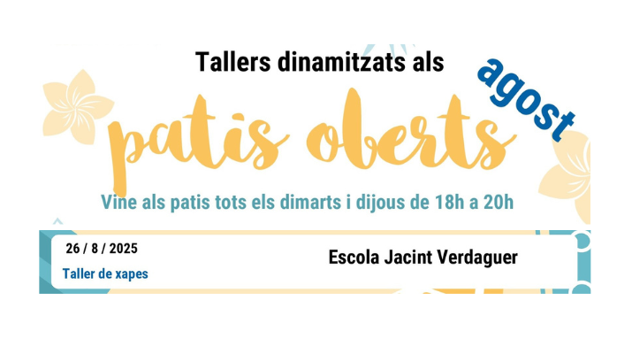 Esteu aquíInici » Agenda d'activitats » TALLER DINAMITZAT PATI OBERT: Taller de xapes TALLER DINAMITZAT PATI OBERT: Taller de xapes Temes: Educació, EstiuTIPUS: JocsCicles: Tallers dinamitzats Pati ObertPer a qui: Familiar, Infantil