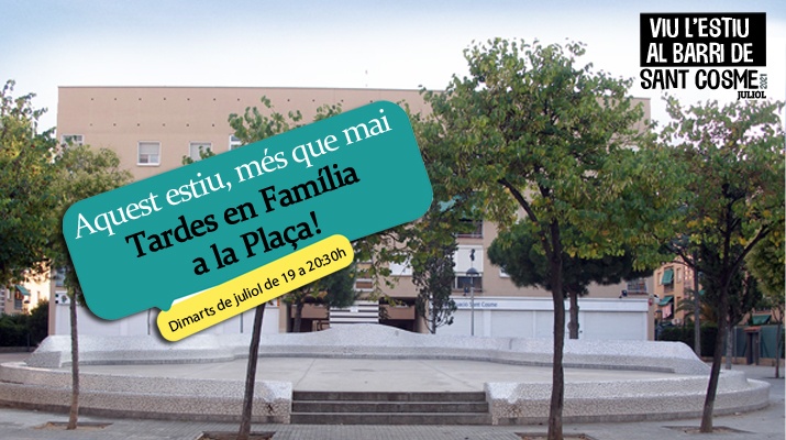 Dimarts de juliol de 19 a 20:30 us hi esperem a la plaça Remodelació del barri de Sant Cosme per passar una bona estona en família amb tallers, jocs tradicionals, música, circ i moltes més activitats.