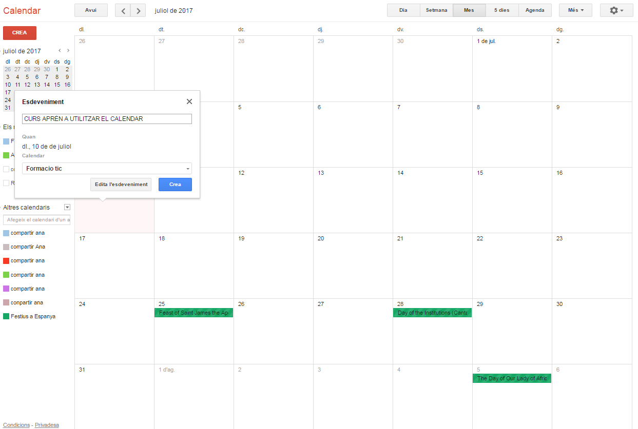 Aprèn a utilitzar el Calendar