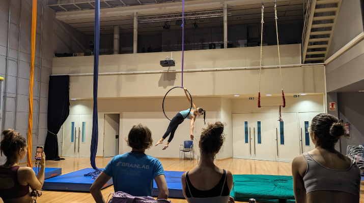 Curs centrat en els fonaments del cèrcol aeri en moviment, adreçat a nivells bàsic i intermedi. Es treballaran la força, la flexibilitat i l’expressió corporal, a través de seqüències tan individuals com en duet. L’activitat es desenvoluparà en un espai segur, creatiu i acollidor, afavorint l’aprenentatge progressiu i el gaudi del moviment aeri.
