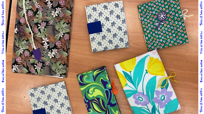 Creació de llibretes o blocs de notes originals i personalitzades, a partir del material reutilitzat: cartró, fulls, tela, llana etc.