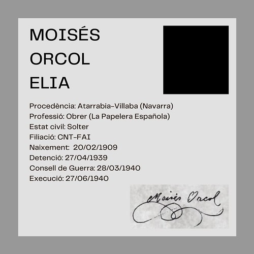 El 27 de juny de 1940 MOISÉS ORCOL ELÍA va ser afusellat al Camp de la Bota.