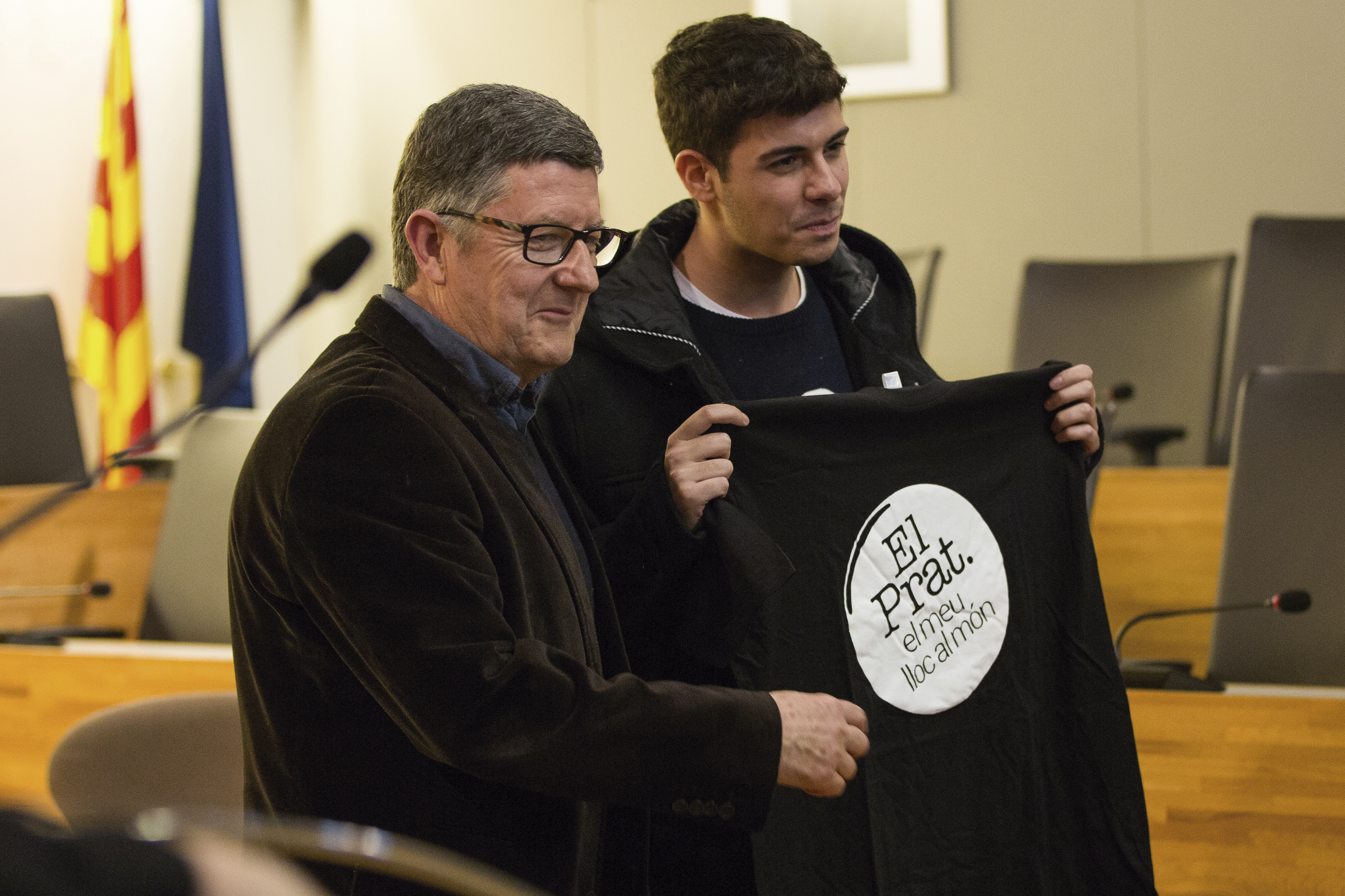 L’alcalde del Prat ha rebut el cantant a l’Ajuntament, felicitant-lo i agraint-li que hagi difós la cultura pratenca.
